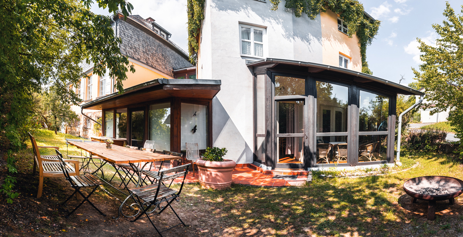 Für Sonnenanbeter im Außenbereich! Auf den großzügig angelegten Grünflächen vor und hinter dem Haus Quitte entspannen Sie sich außerhalb der Seminarzeiten. Bei geeignetem Wetter bietet es sich an, den Außenbereich in die Kleingruppenarbeit einzubeziehen und den Sommer zu genießen.